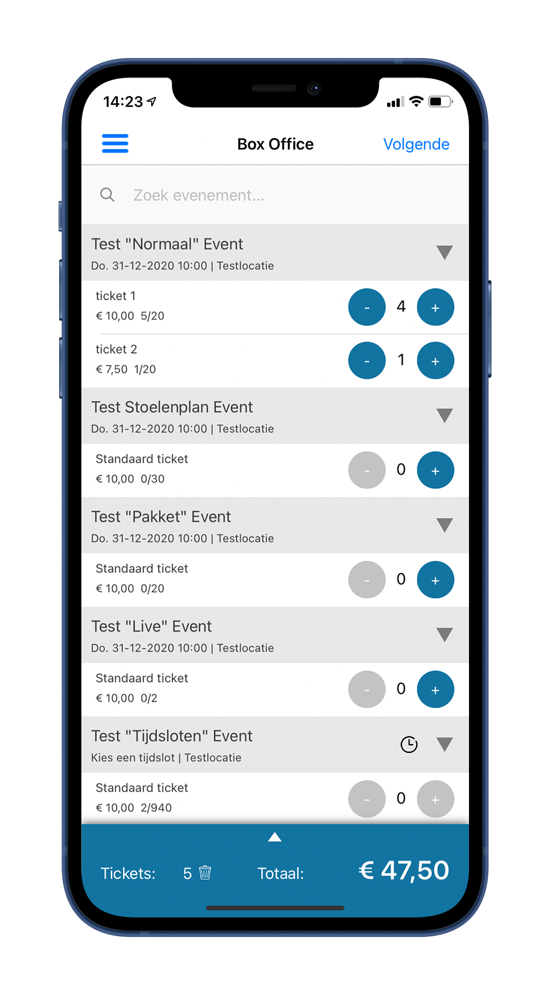 Met de Box office heeft u uw eigen kassa systeem en kunt u ter plaatse nog tickets verkopen.